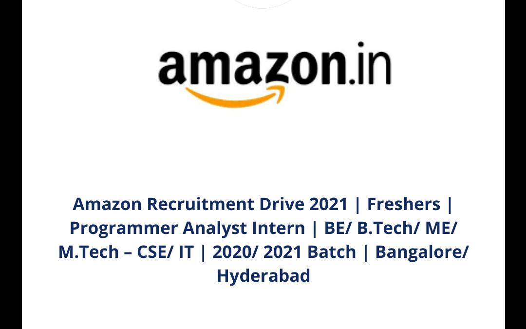 Amazon Recruitment Drive 2021 | Freshers | Programmer Analyst Intern | BE/ B.Tech/ ME/ M.Tech CSE/ IT | 2020/ 2021 Batch | Bangalore/ Hyderabad