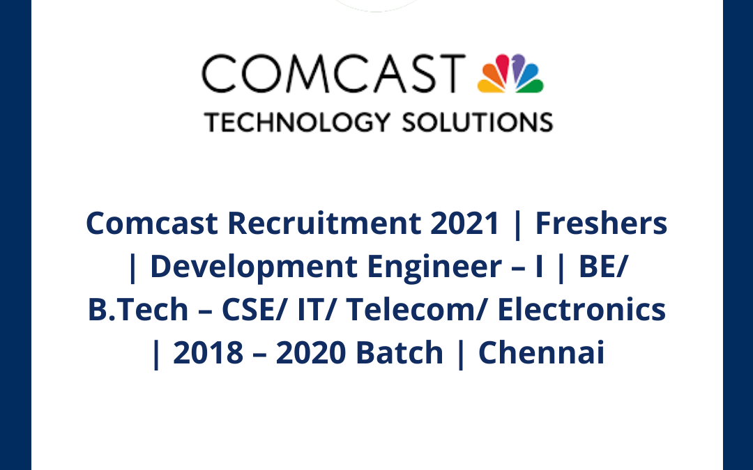 Comcast Recruitment 2021 | Freshers | Development Engineer I | BE/ B.Tech CSE/ IT/ Telecom/ Electronics | 2018 2020 Batch | Chennai