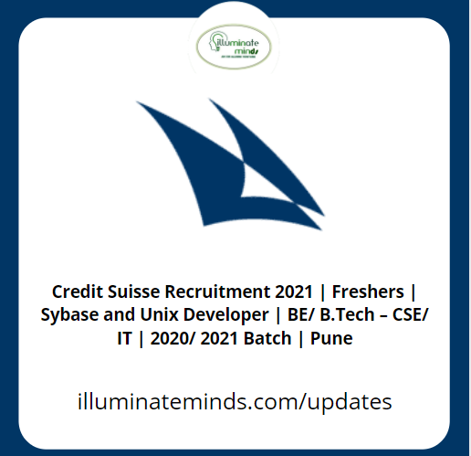 Credit Suisse Recruitment 2021 | Freshers | Sybase and Unix Developer | BE/ B.Tech – CSE/ IT | 2020/ 2021 Batch | Pune