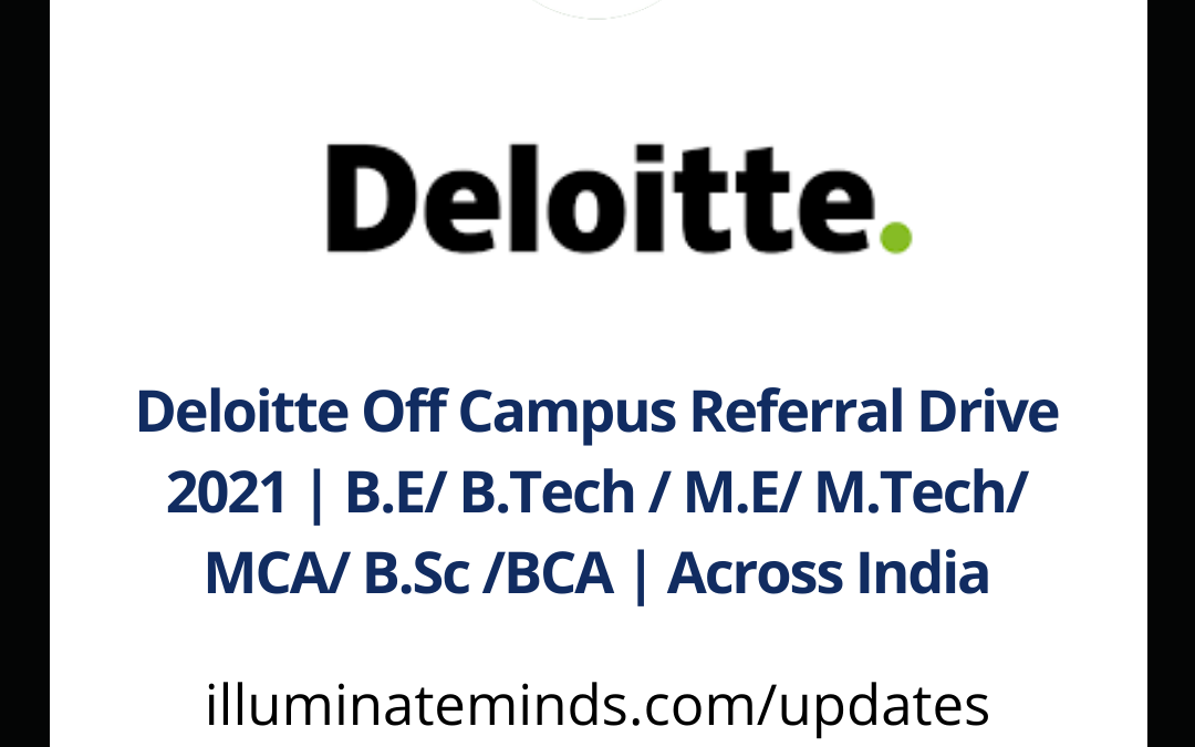 Deloitte Off Campus Referral Drive 2021 | B.E/ B.Tech / M.E/ M.Tech/ MCA/ B.Sc /BCA | Across India | Off Campus