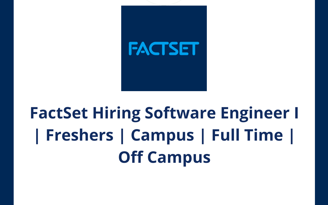 FactSet Hiring Software Engineer I | Freshers | Campus | Full Time | Off Campus