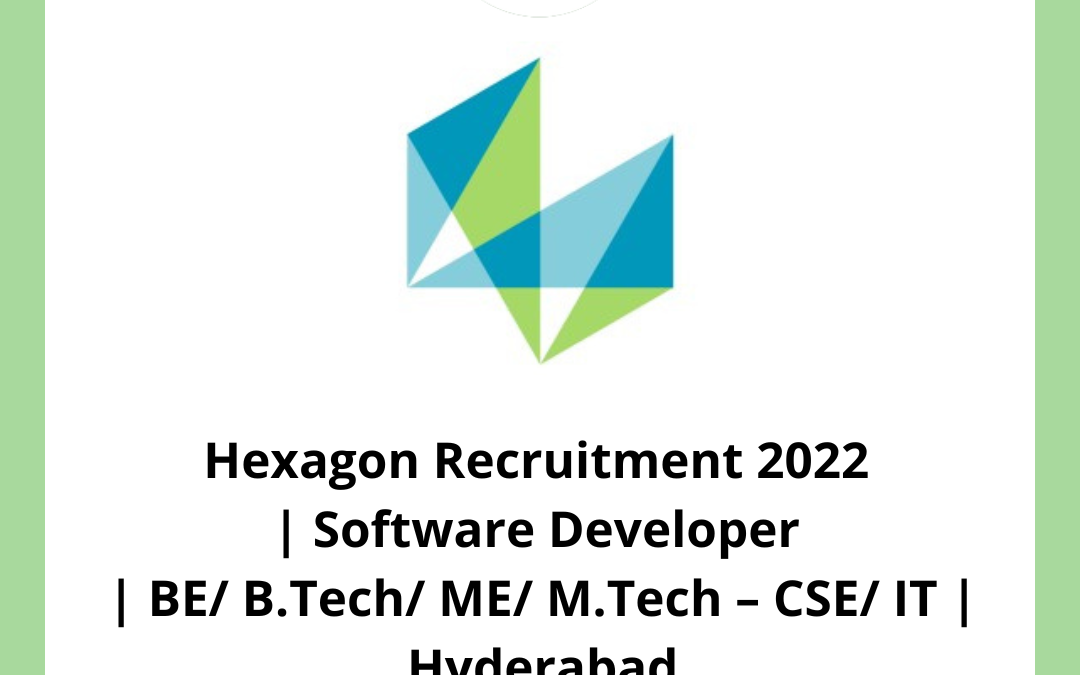 Hexagon Recruitment 2022 | Software Developer | BE/ B.Tech/ ME/ M.Tech – CSE/ IT | Hyderabad