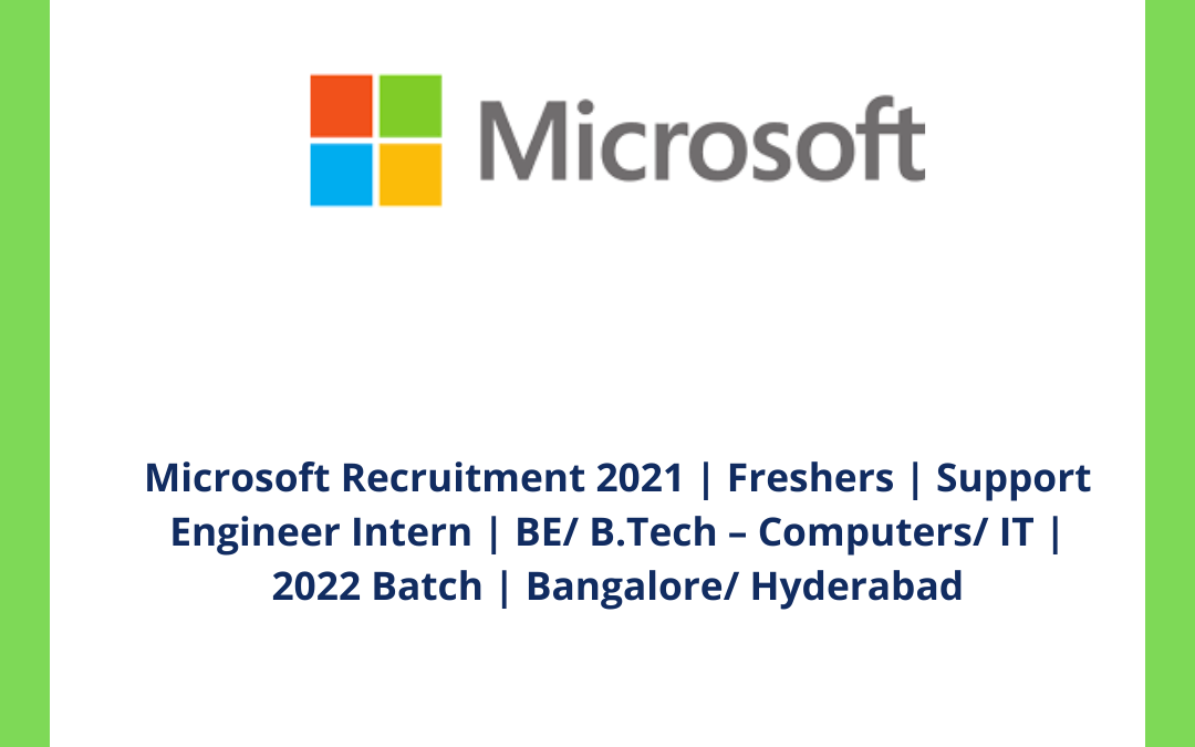 Microsoft Recruitment 2021 | Freshers | Support Engineer Intern | BE/ B.Tech Computers/ IT | 2022 Batch | Bangalore/ Hyderabad