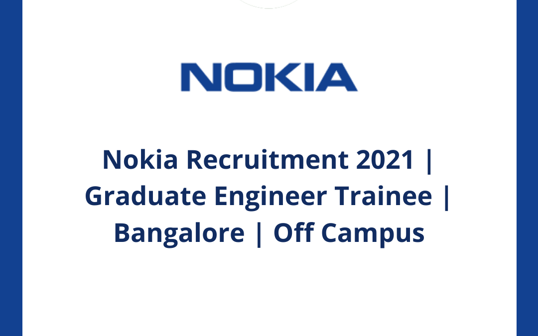 Nokia Recruitment 2021 | Graduate Engineer Trainee | Bangalore | Off Campus
