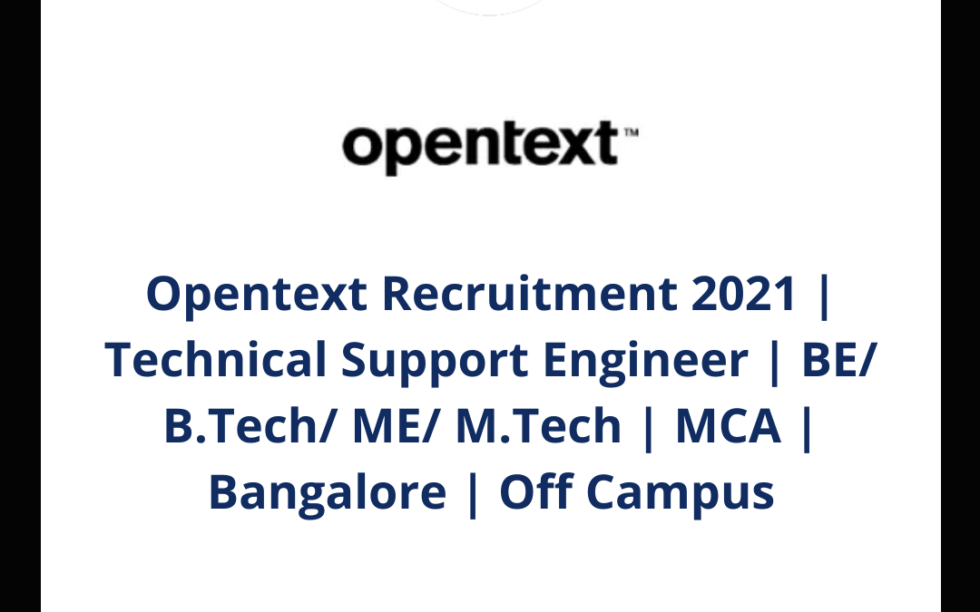 Opentext Recruitment 2021 | Technical Support Engineer | BE/ B.Tech/ ME/ M.Tech | MCA | Bangalore | Off Campus