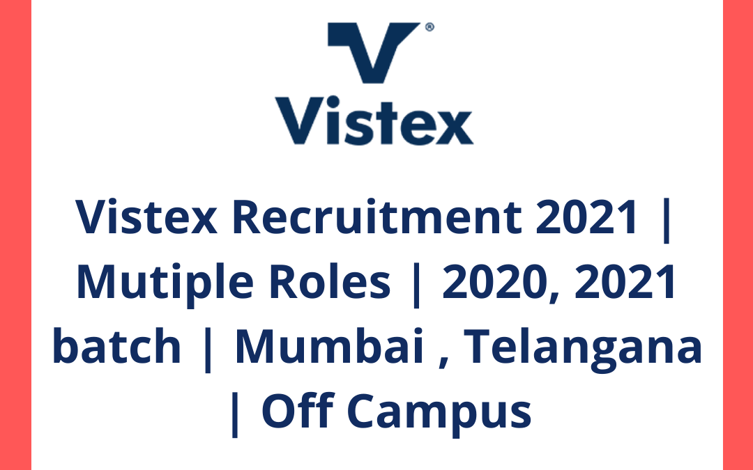 Vistex Recruitment 2021 | Mutiple Roles | 2020, 2021 batch | Mumbai , Telangana | Off Campus