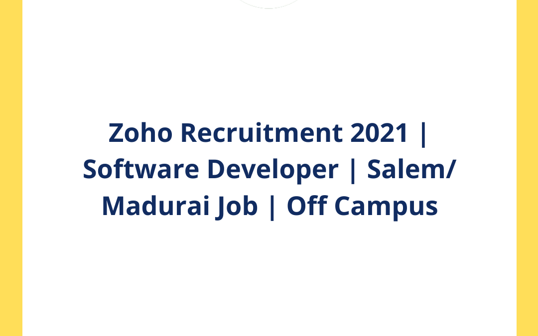 Zoho Recruitment 2021 | Software Developer | Salem/ Madurai Job | Off Campus